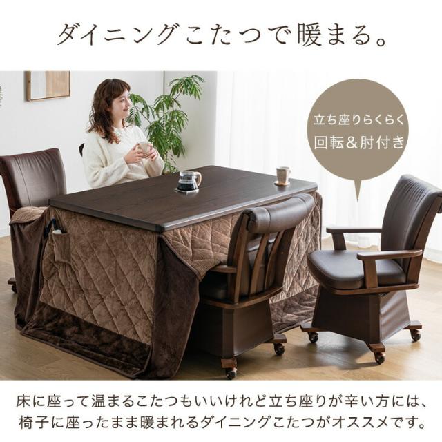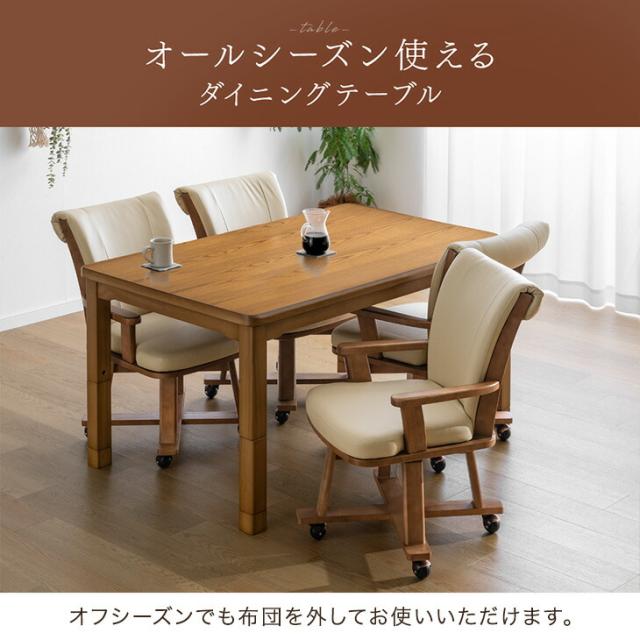 ダイニングこたつ 6点セット 高さ調節 135 長方形 肘掛け キャスター 回転 イス ハイタイプ ダイニング リビングこたつ 高脚こたつ 高足 高脚 こたつ セット こたつセット 4人 4人用