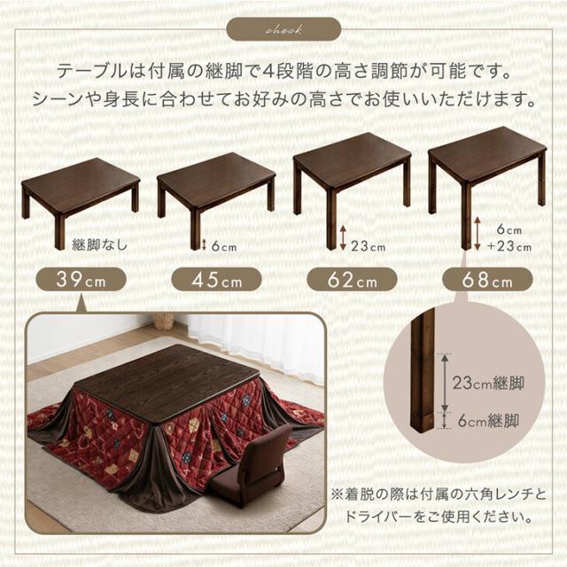 ・こたつ本体+チェア4脚+掛布団の6点セット