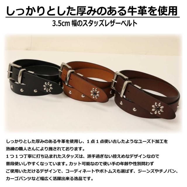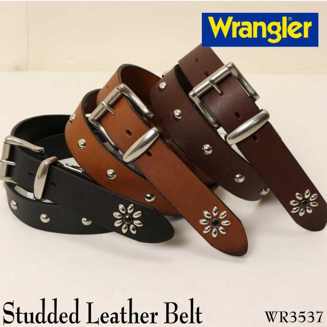 Wrangler ラングラー ベルト スタッズ レザー ベルト WR3537 3.5cm 35mm 本革 牛革 メンズ ファッション グッズ 小物