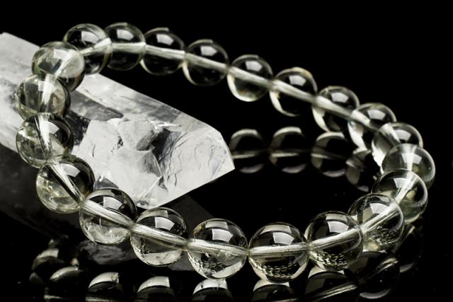 | 特徴・意味 | クリア感が抜群の淡いグリーンカラーのアメジストです。 不純物もクラックもない非常に高品質なブレスレットです。 アメジストが加熱により美しいグリーン色に変化したものを言います。 グリーンアメジストの由来 通常アメジストは加熱するとシトリンに変化するのですが、ブラジル・バイヤ州にある鉱山のアメジストを1953年、偶然に650度で加熱したところ、シトリンではなく今までに無い美しいミントグリーンに変化しました。それがグリーンアメジストです。 一部の鉱山で産出されたものしかグリーンアメジストに変化しない為、大変希少で「プラジオライトPrasiolite」と名付けられ市場に出回るようになりました。プラジオライトの名前の由来は、ギリシャ語の(Prasios明るい緑)からきています。 グリーンアメジスト(プラジオライト)は主に対人関係について愛と癒しをもたらす石で、想像力、感受性、表現力を高めることで、あらゆる人間関係のトラブルを円満解決に導きます。 |