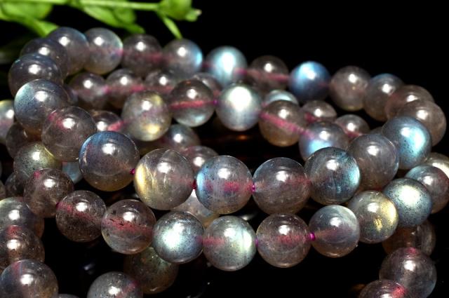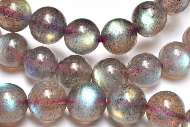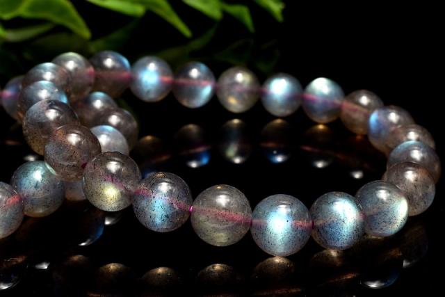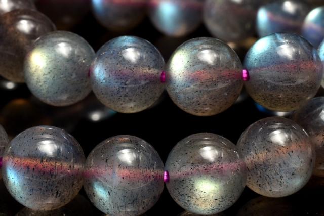 | 特徴・意味 | 全珠に美しいラブラドレッセンスを確認できます! 透明度がある珠も確認でき、レインボーのシラーが美しいです。 18世紀後半、カナダのラブラドール半島にあるセント・ポール島で、宣教師が海岸で光り輝く石を発見。この石は発見地にちなんで、ラブラドライトと名付けられました。 ラブラドライトの特色は、なんと言ってもその美しい閃光です。冷たそうでいて、非常に深みのある光は「ラブラドレッセンス(ラブラド光線)」と呼ばれます。 発色の秘密は、この石の成分にあります。曹長石と灰長石が規則正しく縞模様を成すように混ざっているのですが、わずかに屈折率の違う部分がいくつも積み重なると、光の干渉現象が生じ、さまざまな遊色効果(シラー効果)となって現れるのです。 脾臓や仙骨にあるエネルギー・センターを活性し性エネルギーの不足を補う、肺を始めとする呼吸器系の働きの活性化、血液と神経系統の活性化を行うとされます。 また、石を持った人のオーラに特定の色素を加える作業を行い、オーラバランスの修復・安定化を図るとされます。 |