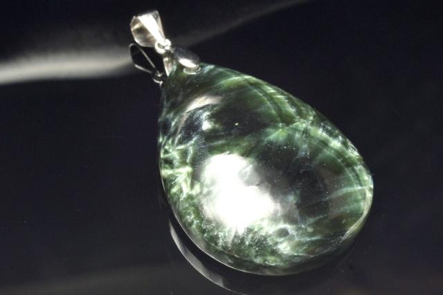 【1点物】シルバー925◇ロシア産 セラフィナイト 34x25mm ドロップ ペンダントトップ _PC9949