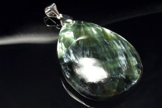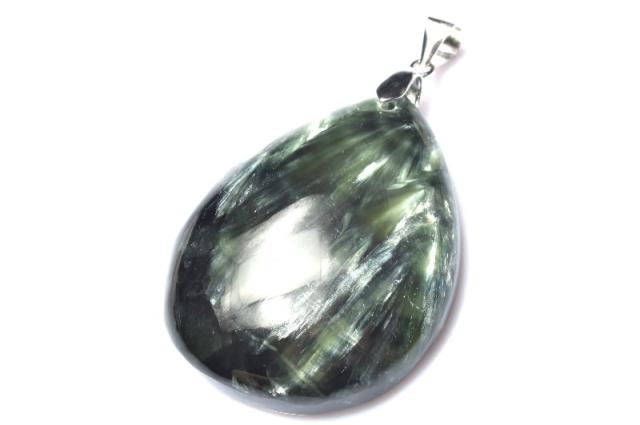 【1点物】シルバー925◇ロシア産 セラフィナイト 35x27mm ドロップ ペンダントトップ _PC9953