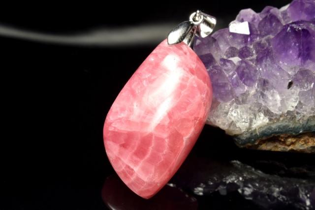 | 特徴・意味 | 人気のアルゼンチン産インカローズのペンダントトップです。 光沢や艶感もあり見ているだけでもうっとりしてしまいでそう! インカローズは、和名を「菱マンガン鉱(りょうまんがんこう)」と言います。 カルサイト(方解石)の「類質同像」で、和名の通りにマンガンを含むピンク色の石です。 インカローズの正式名はロードクロサイト(Rhodochrosite)ですが、流通名の「インカローズ」の方が広く知れ渡っています。 |