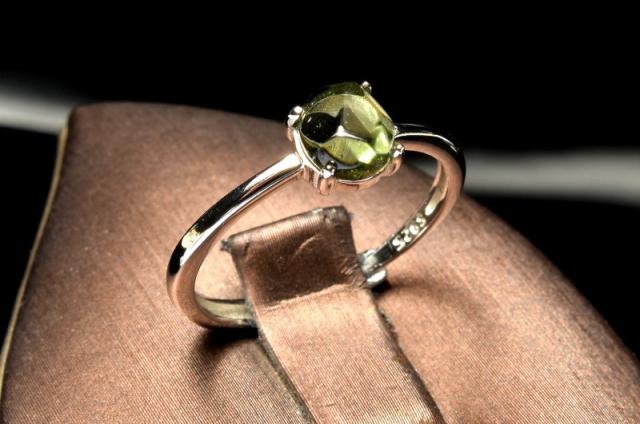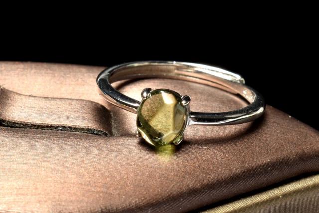 【1点物】シルバー925◇入手困難 モルダバイト 7x6mm 原石ラフカット 指輪リング(サイズ調整可) _PD42