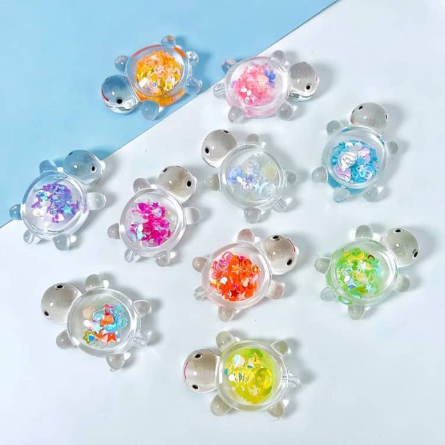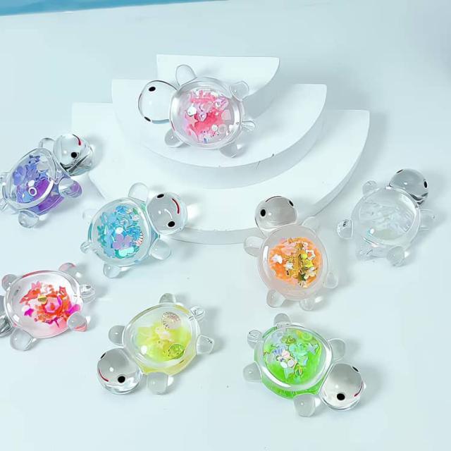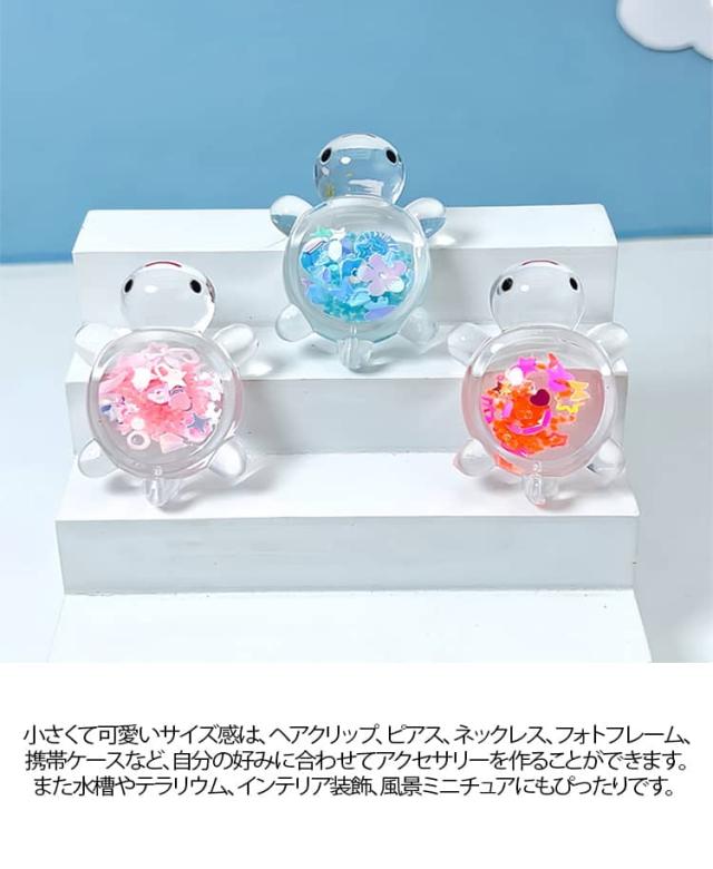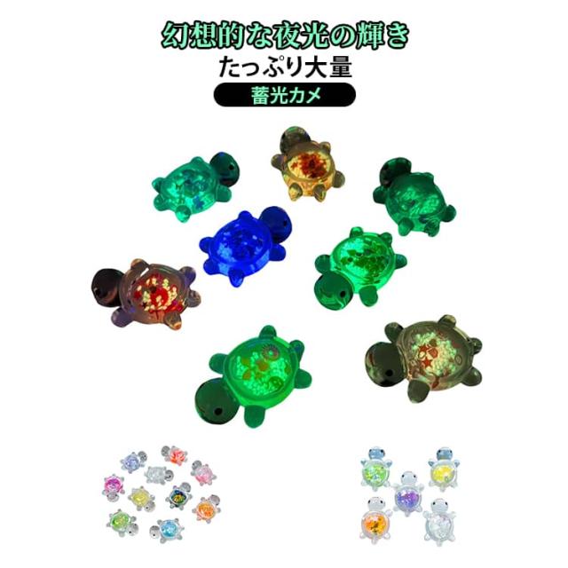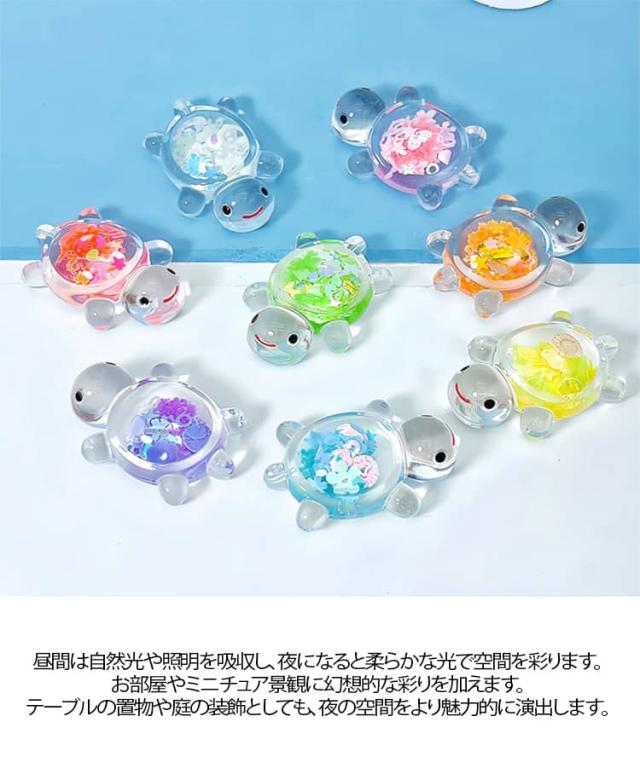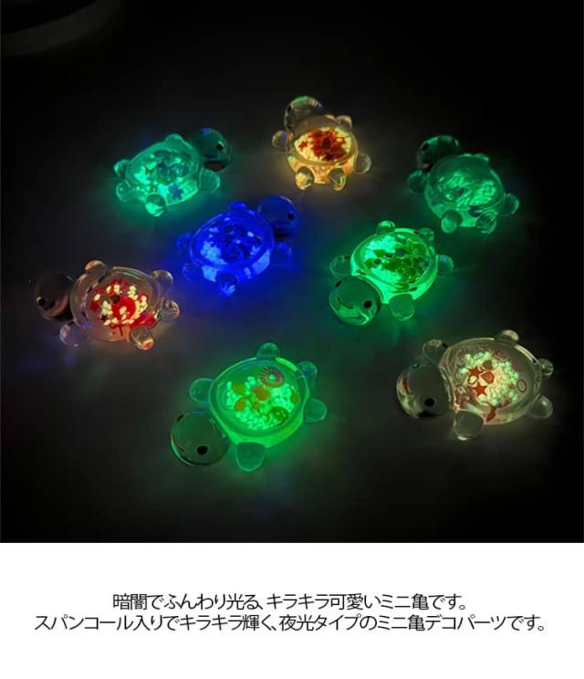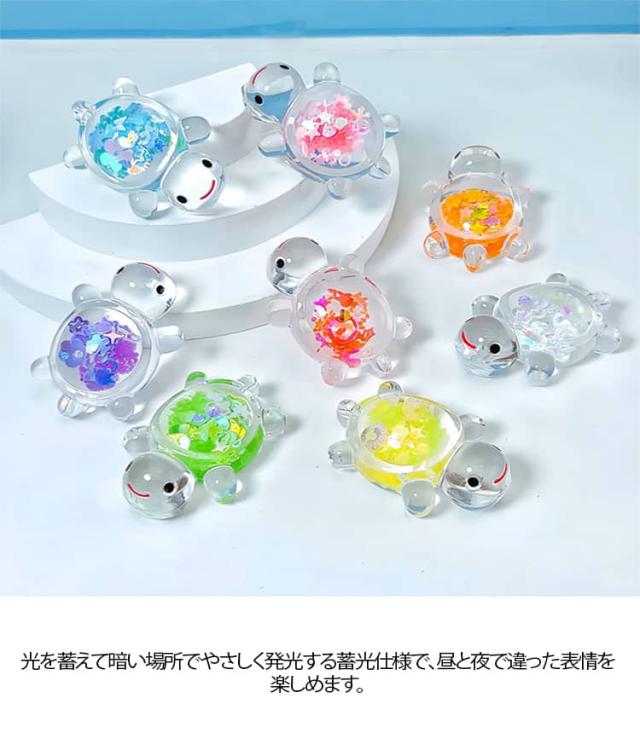 スパンコール入り かめ 光る 18個 蓄光タイプ 装飾 8個 キラキラ チャーム 亀 デコパーツ オブジェ カプセル ミニ亀 ミニチュア 水槽 置物 アクセサリー キラキラ 縁日 景品 屋内外兼用 発光置物 工芸品 風景装飾 送料無料 キッズ