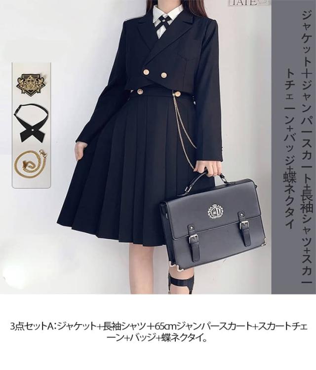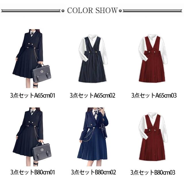 | シルエットが美しい制服セットアップ3点セットです。 アレンジもしやすく注目を集める完璧なコスプレが可能です。 同じポリエステル素材で、しわになりくく着心地も抜群です。 XS-5XLまで豊富なサイズをご用意!自分にぴったりのサイズが選べるからボディラインも綺麗に出ます。 3点セットA:ジャケット+長袖シャツ+65cmジャンパースカート+スカートチェーン+バッジ+蝶ネクタイ 3点セットB:ジャケット+長袖シャツ+80cmジャンパースカート+スカートチェーン+バッジ+蝶ネクタイ | |