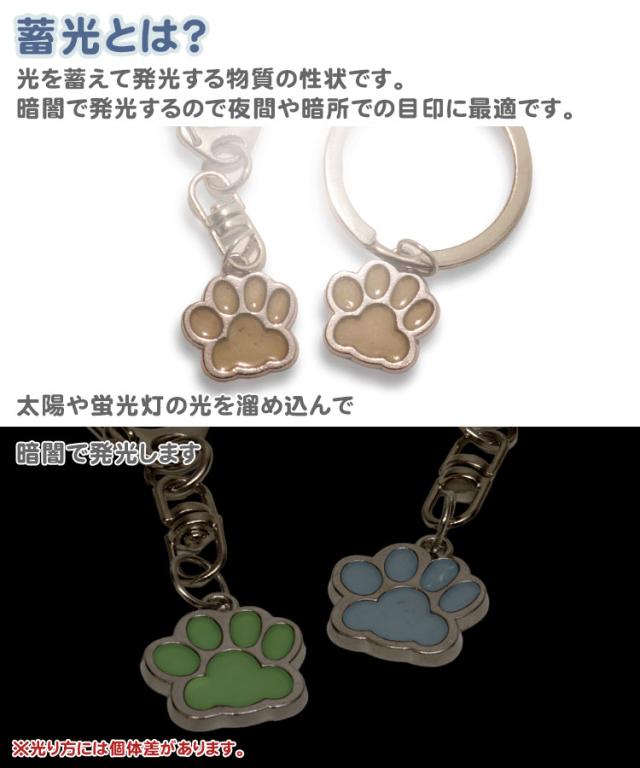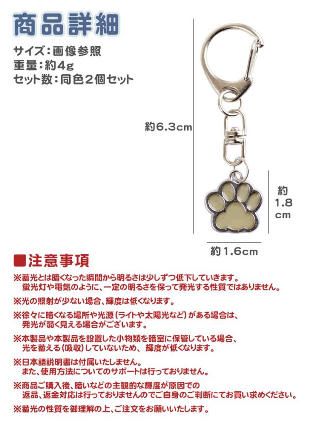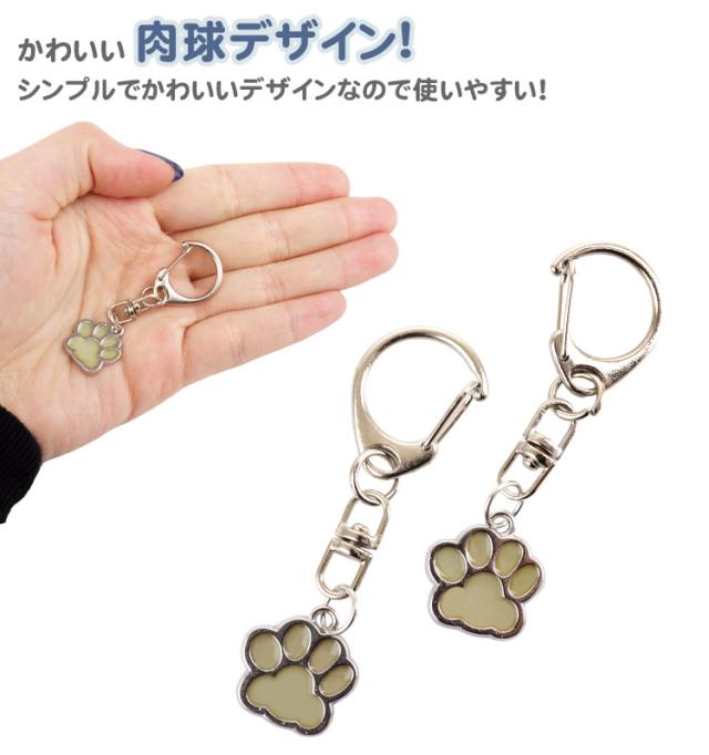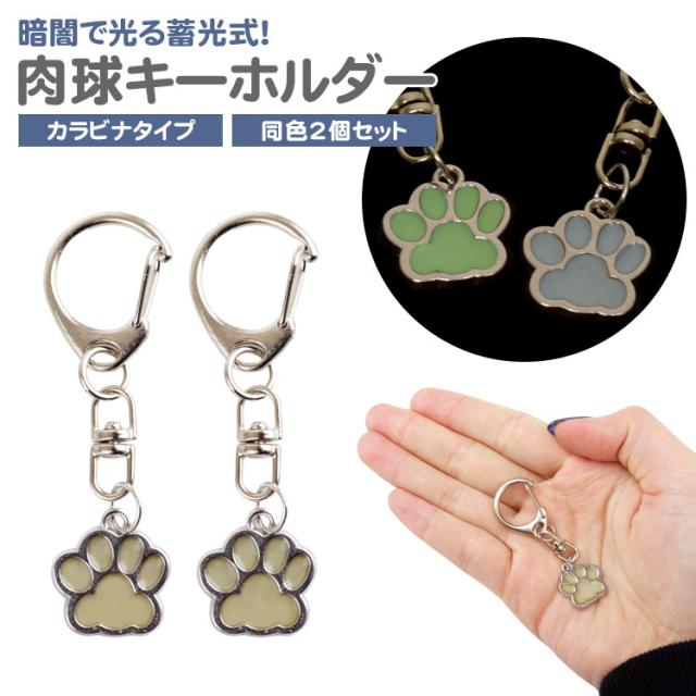 肉球 蓄光 発光 キーホルダー 猫 犬 2個セット 目印 かわいい 光る カラビナ 軽量 アニマル チャーム シンプル ポーチ 財布 小物