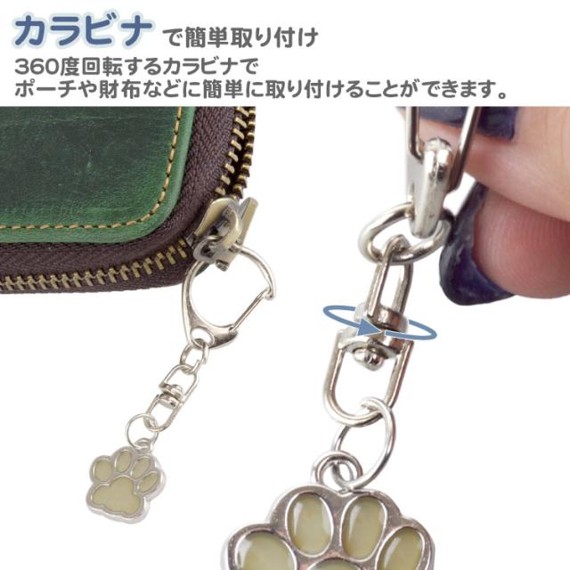 カラビナが付属しているので、ポーチやお財布など用途に合わせて簡単に装着できます。