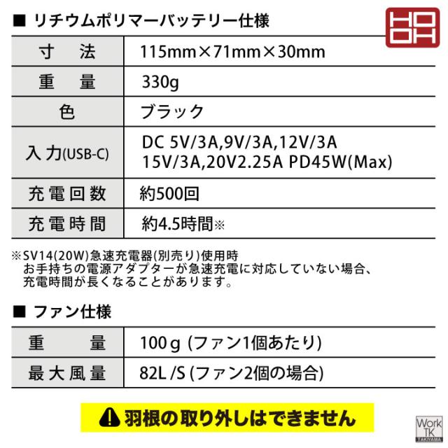 2026年新型 HOOH 19V バッテリー ファンセット 空調ウェア 空調作業服 ファン付きウェア 暑さ対策 熱中症対策 猛暑 涼しい 春夏 作業服 現場作業 プロ仕様 ハイパワー 大容量 大風量 急速充電 軽量 鳳凰 村上被服 即日出荷 mh-sv900