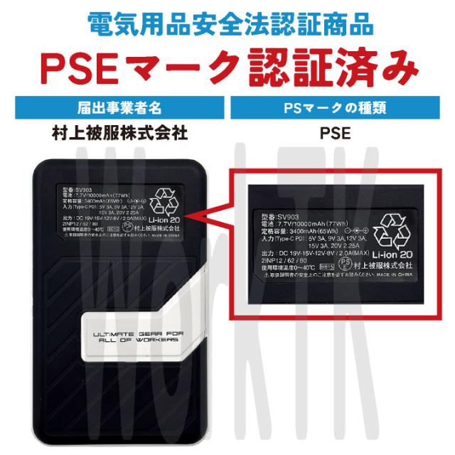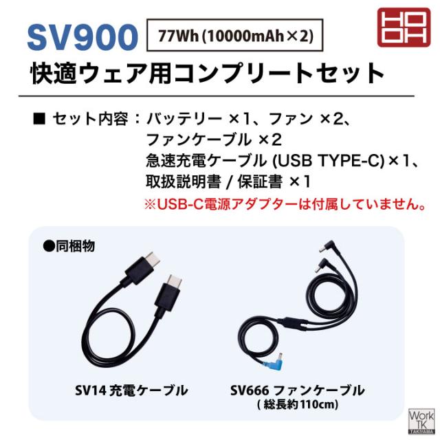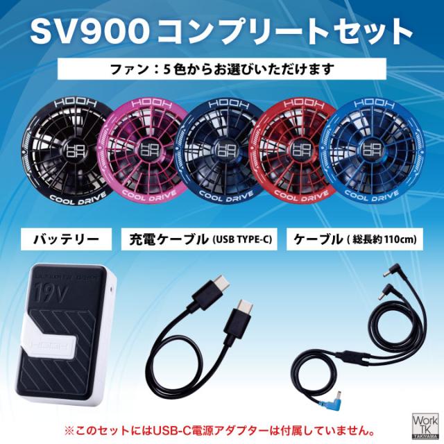 村上被服 SV900 最大出力19Vバッテリーとハイパワーファン、充電ケーブルまでをすべて同梱した、初心者から買い替えの方まで納得のコンプリートセット。