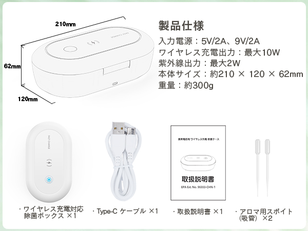 ・除菌ボックス本体(ワイヤレス充電対応)×1