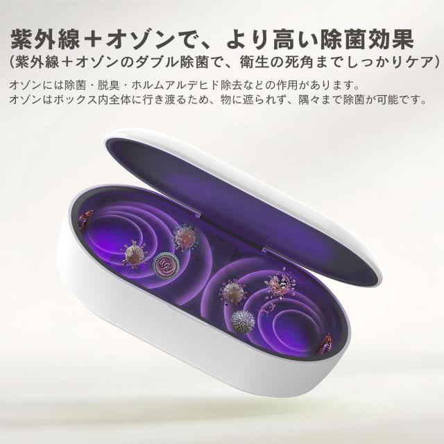 除菌ケース UV 紫外線 99.9% オゾン ウイルス対策 消毒 2WAY ワイヤレス充電器 10W アロマ対応 スマホ 時計 鍵 眼鏡 アクセサリー PSE認証済み