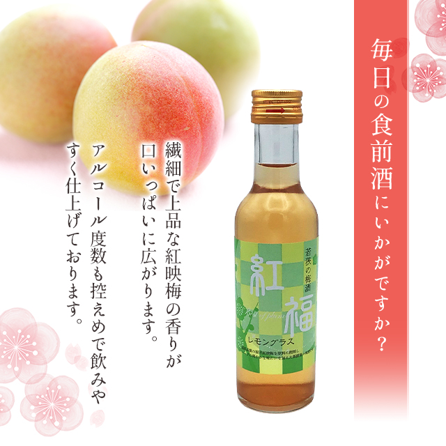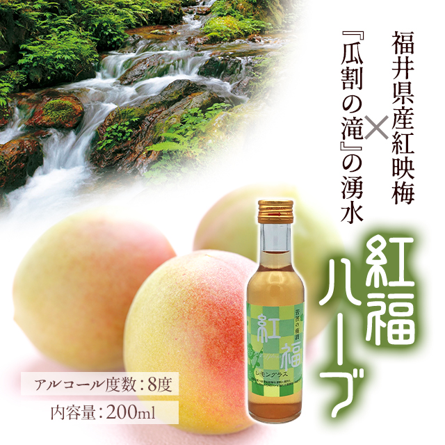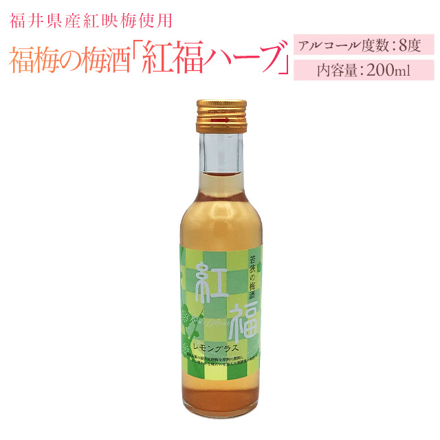 【紅福】梅酒(アルコール8度)200ml/福井県産紅映梅使用/田舎造り/【名水百選瓜割の水使用】/食前酒/お酒/レモングラス/ハーブ お取り寄せ グルメ