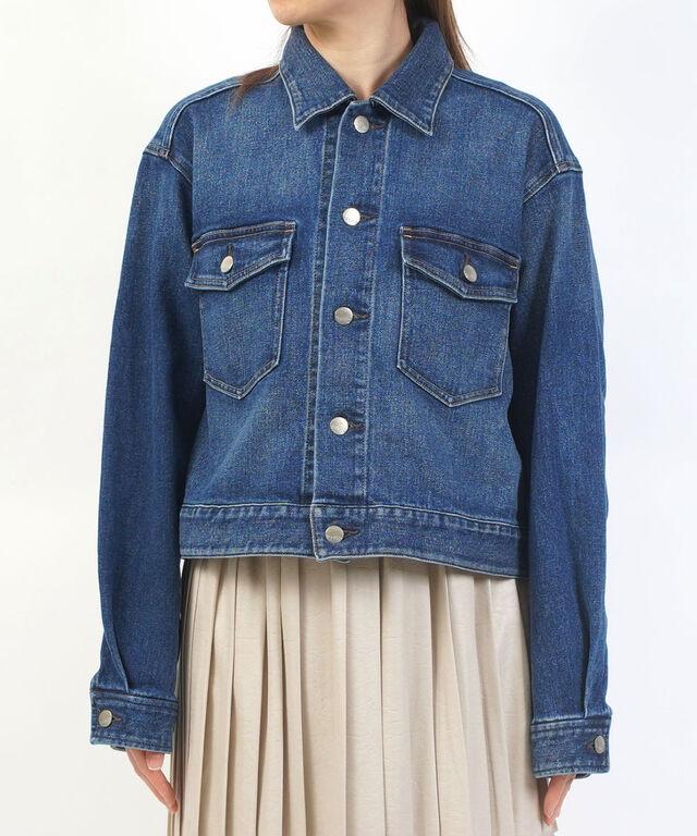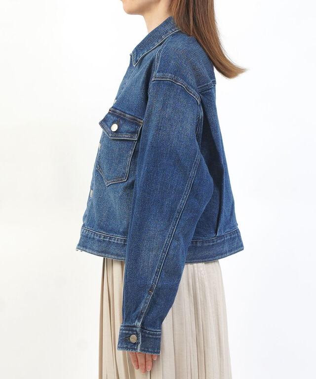 ショート丈にやや落とし気味な肩のラインのシルエットは、