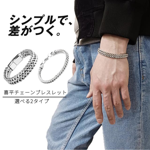 喜平チェーン ブレスレット メンズ ステンレス シルバー 一重 二重 マグネット カニカン 太め 喜平ブレスレット 男性用 シンプル アクセサリー 19cm 21cm 高級感 腕輪