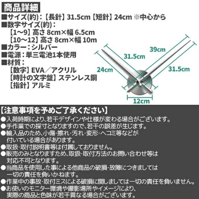 | サイズ | 長針31.5cm、短針 24cm(中心から) |