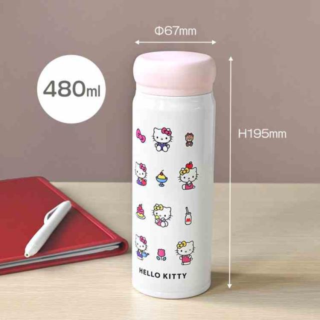 ハローキティ 水筒 ステンレスボトル 480ml サンリオ キティちゃん 直飲み ステンレス 保冷 保温 真空断熱 女性 女の子 大人 子供 かわいい おしゃれ キャラクター 軽量 マグボトル OSK コンパクト 保温ボトル 保冷ボトル 通勤 通学 小学生 中学生 高校生 誕生日 プレゼント