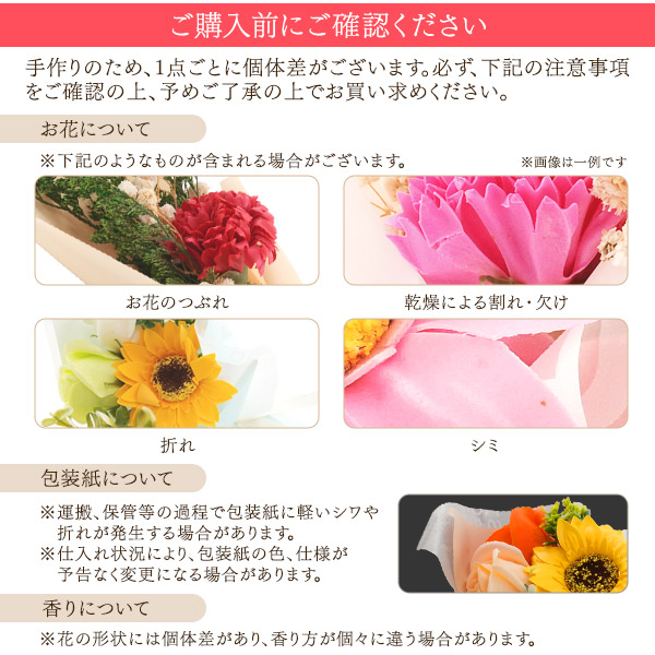 ※ソープフラワーは石鹸素材から作られた観賞用のお花のため、普通の石鹸・入浴剤のように使用することはできません。