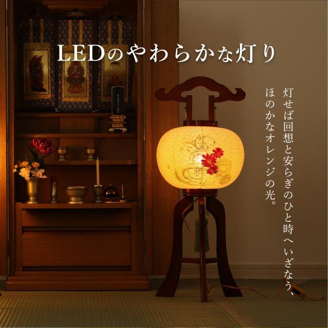 灯せば回想と安らぎのひと時へいざなう、ほのかなオレンジの光。9号サイズはお部屋に映える存在感、ご先祖に敬意を表して華やかに。