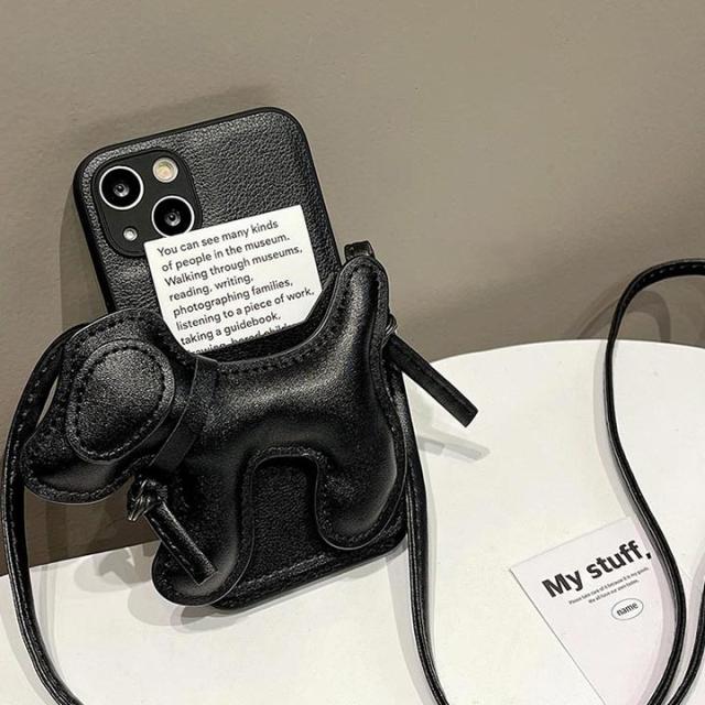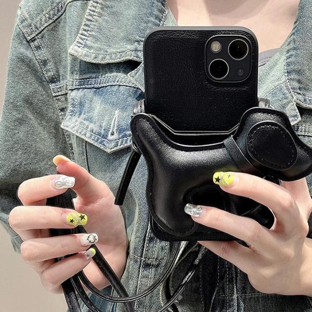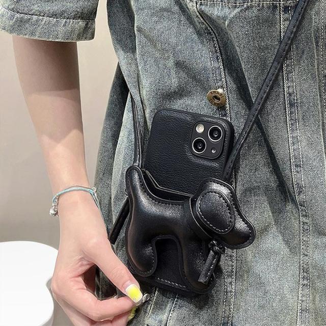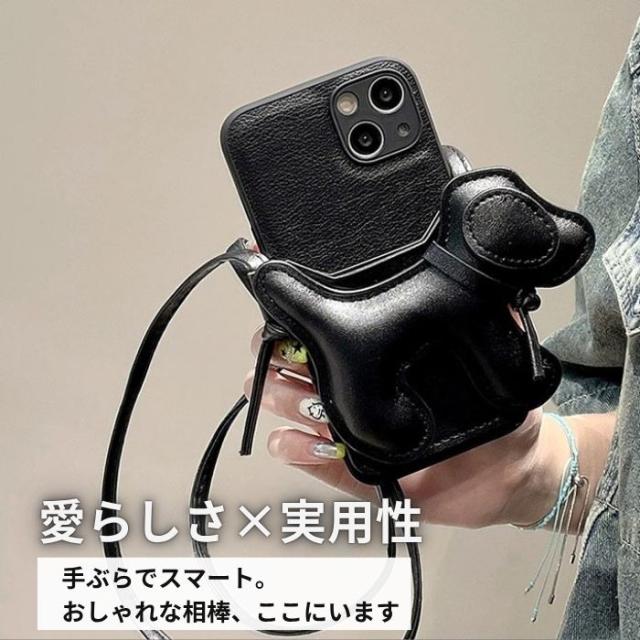 iPhone16ケース 犬モチーフ スマホショルダー iPhoneケース カード収納付きおしゃれなレザー調犬型デザインケース ショルダーストラップ付き iPhone16/15/14/13/12/11 韓国風かわいいiPhoneケース レディース