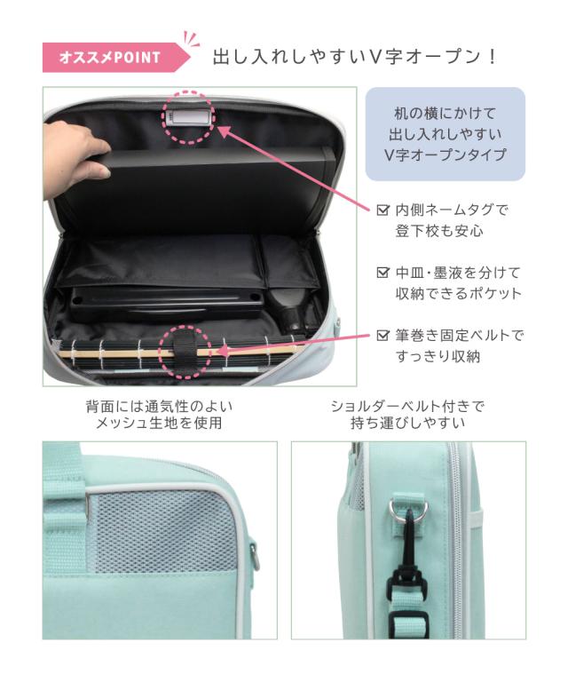 ◆パステルカラーのミントグリーンがかわいい書道セットです。