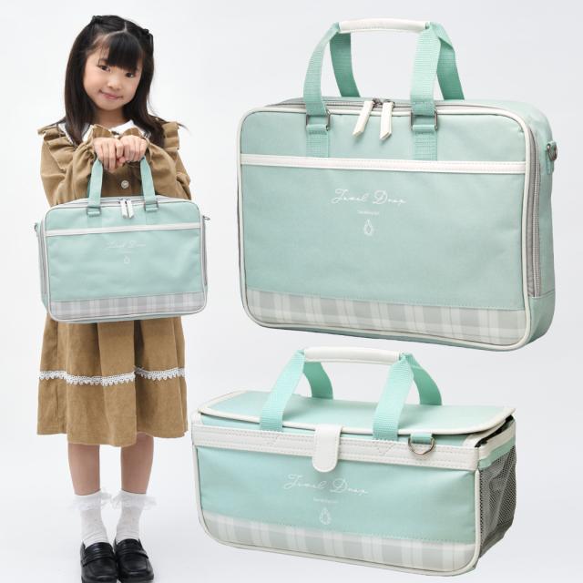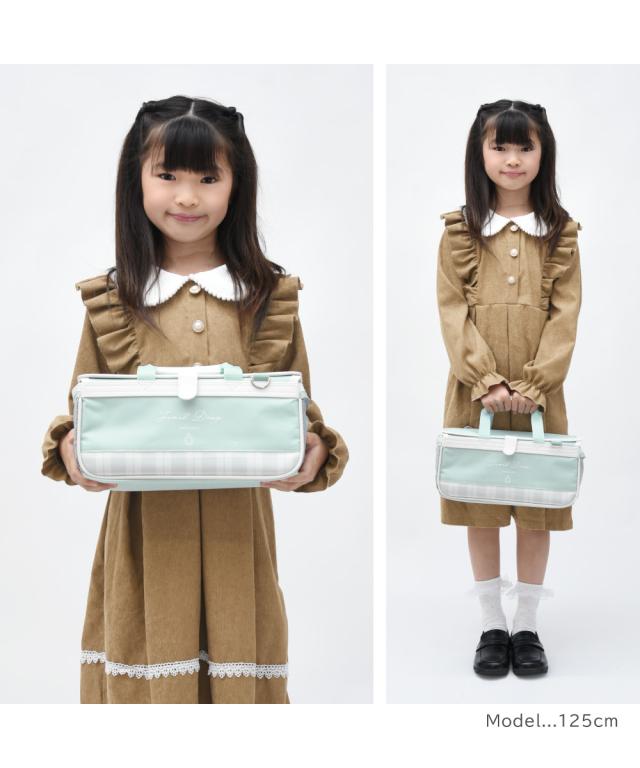 ◆ミントグリーンの生地がかわいい♪チェック柄部分のみ合皮、その他は布地です。