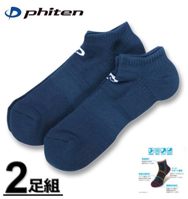 大きいサイズ Phiten ファイテン 2足組 アンクル スポーツ ソックス 靴下 ネイビー 27〜29cm/1249-6240-3-13