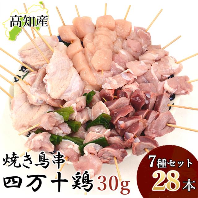 焼き鳥 四万十鶏 オススメ 28本 セット 30g(4本×7種) 鳥肉 四万十鳥 食べ比べ 国産 しまんと鶏 鶏肉 串 串焼き 焼き鳥串 焼鳥 やきとり 高知産 もも肉 むね肉 ささみ 砂肝 鶏皮 ねぎま 手羽串 BBQ 冷凍 [冷凍便] [ヤマト発送]【北海道沖縄県除き送料無料】
