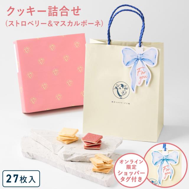 東京ミルクチーズ工場公式 【ショッパータグ付きクッキー詰合せ27枚入(ストロベリー&マスカルポーネ)】スイーツ 焼き菓子 クッキー お菓子 詰合せ おつまみ チーズ カマンベール ギフト プレゼント 東京 お土産 出産内祝い 内祝い お祝い