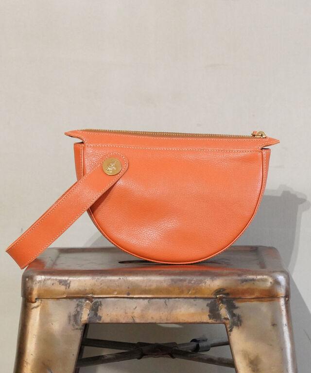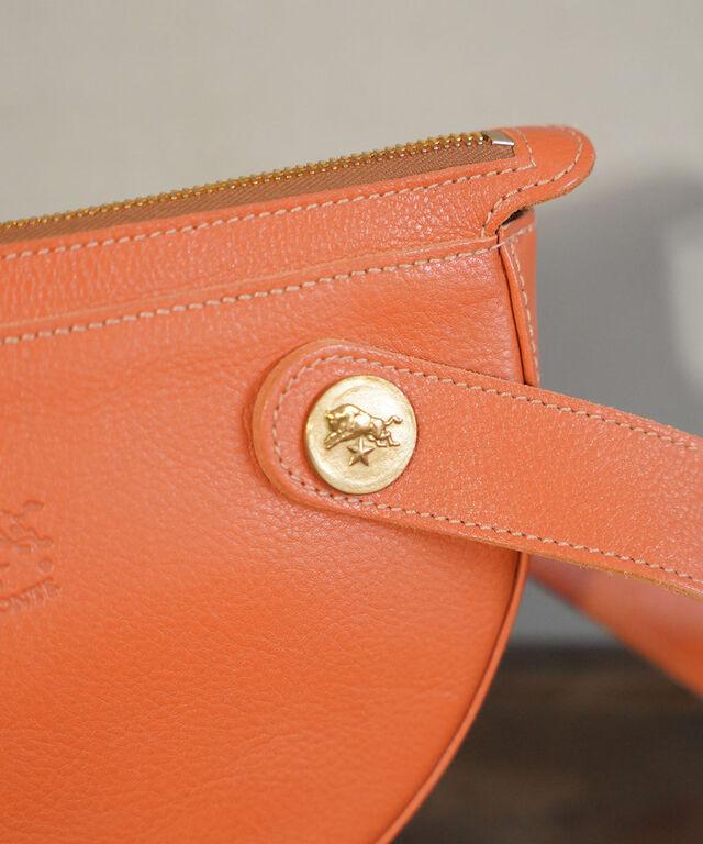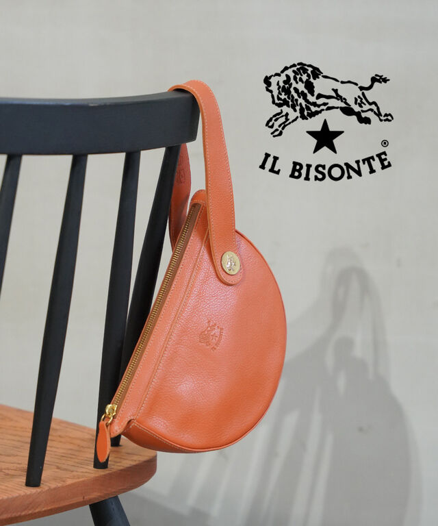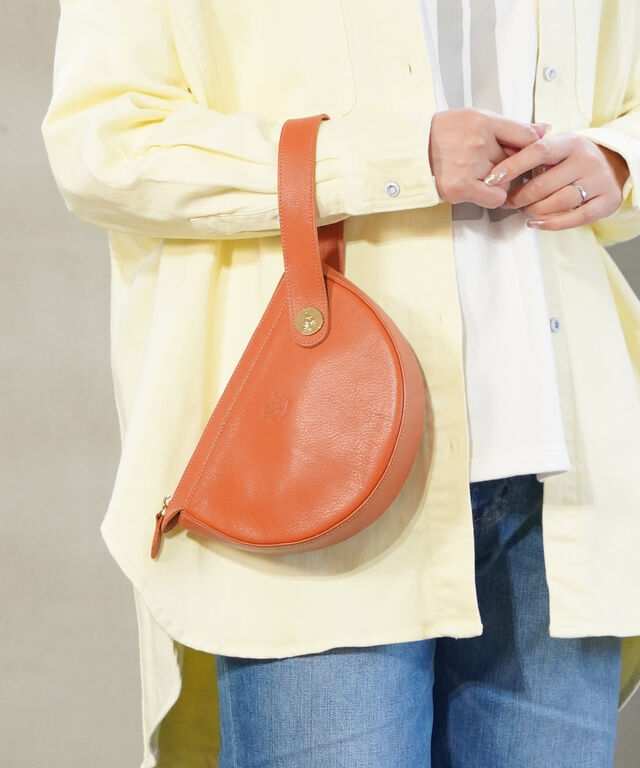 イルビゾンテの新作、ラウンドフォルムのクラッチバッグです。