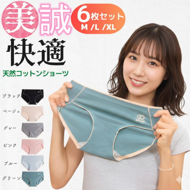 【綿100%】サニタリーショーツ 6枚セット レディース 生理用 ショーツ セット まとめ買い 吸水パッド対応 肌にやさしい コットン 下着 M/L/XL