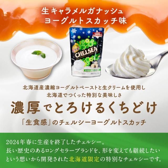 | 名称 | 北海道 生食感 チェルシー ヨーグルトスカッチ味 生キャラメルガナッシュ |
