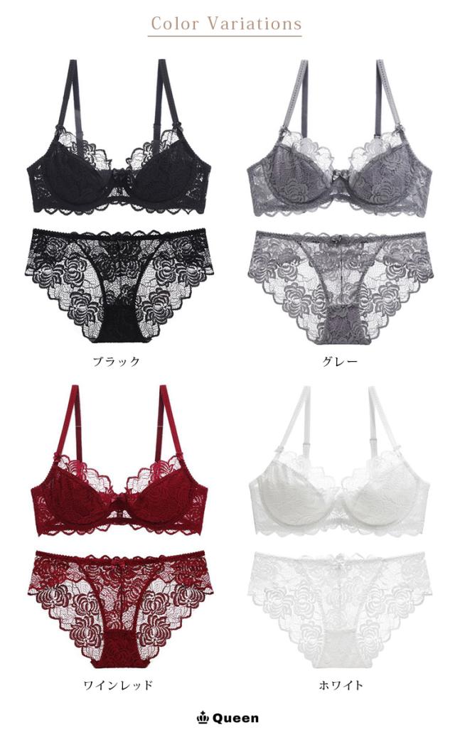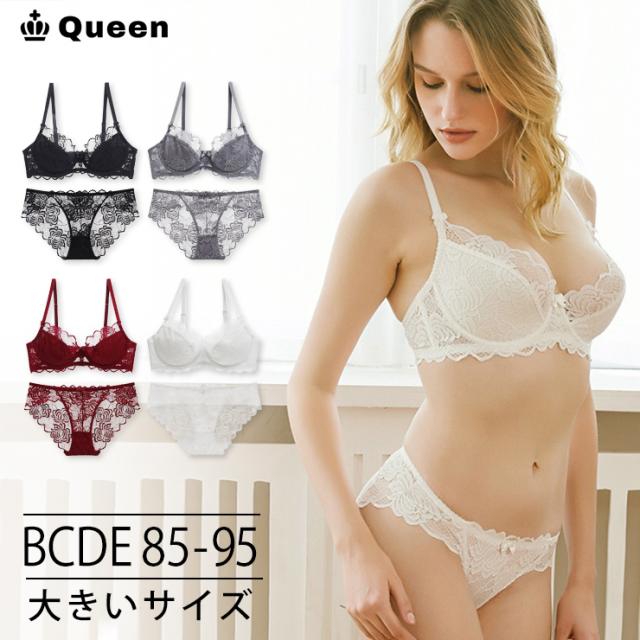 ★☆ブラショーツセット 透けブラ 薄ブラ ブラジャー セクシーランジェリー 上下セット レース シアー ワイヤーあり パッドなし 大きいサイズ レディース 下着 B85 C85 C90 C95 D85 D90 D95 E85 Queen クイーン☆★