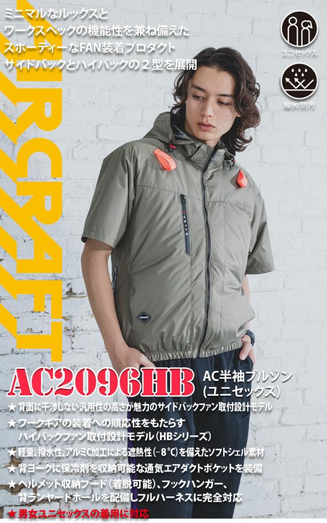 2026年型バートル エアークラフト AC半袖ブルゾン AC2096HB ユニセックス アルミ加工 軽量 撥水 ヘルメット収納フード付き(脱着可能) ハイバックファン取付仕様 メンズ レディース BURTLE 空調作業服 電動ファン用ウェア 制服 作業服
