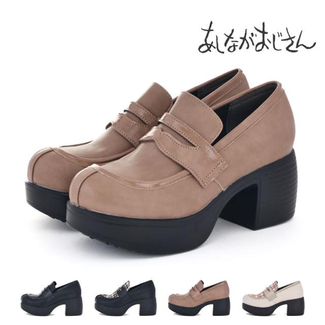 byあしながおじさん レディース パンプス ローファー カジュアルシューズ 厚底コインローファーパンプス 8490119 厚底 太ヒール チャンキーヒール チェック柄 7cmヒール 履きやすい かわいい