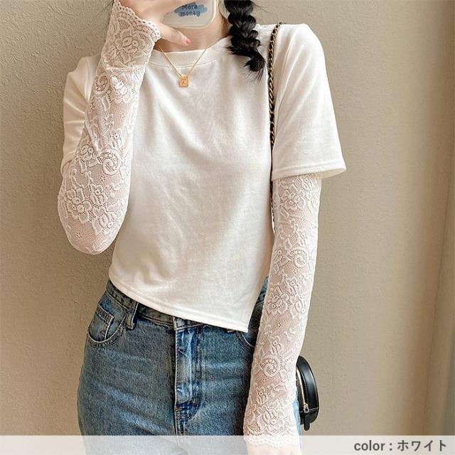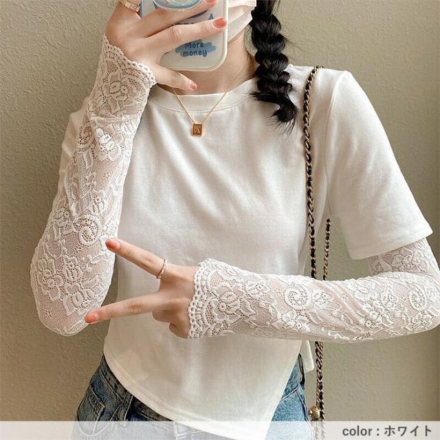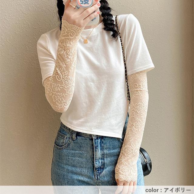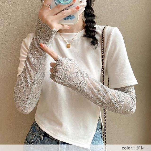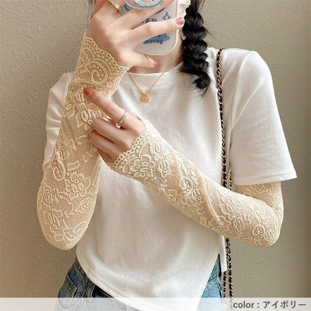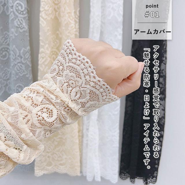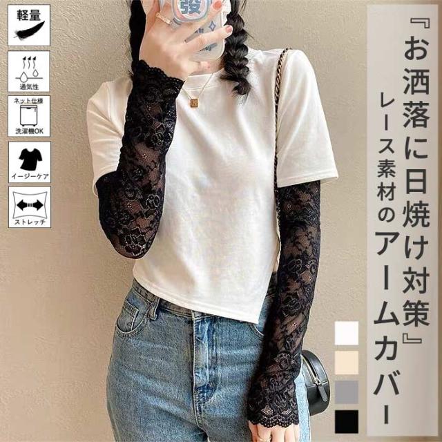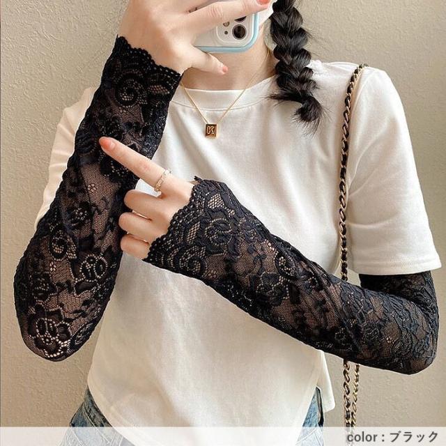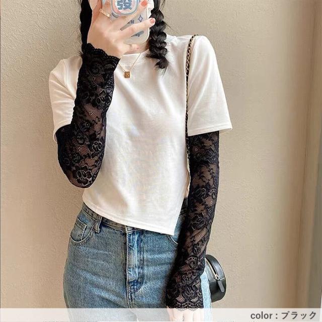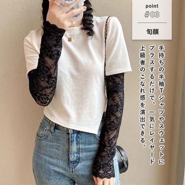 春新作 アームカバー レディース 春 夏 秋 黒 白 おしゃれ かわいい レース素材 シアー UV対策 紫外線対策 防寒 透け感[定形外]^msz176^ ★