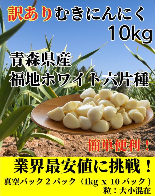訳ありむきにんにく 10kg(1kgx10パック)青森県産 福地ホワイト六片 国産 クール便 真空パック 送料無料(沖縄・離島を除く)