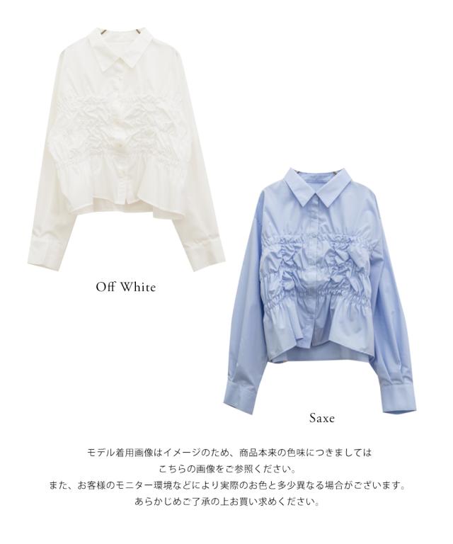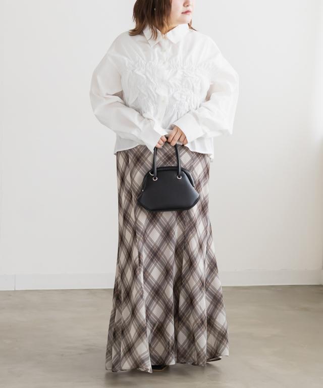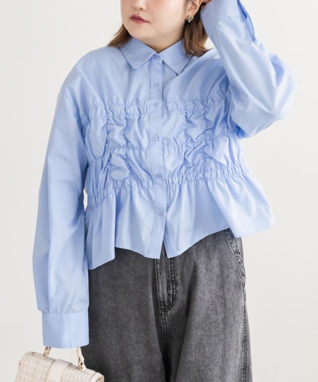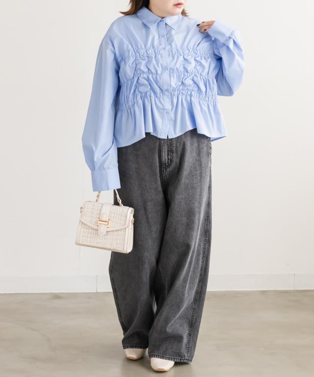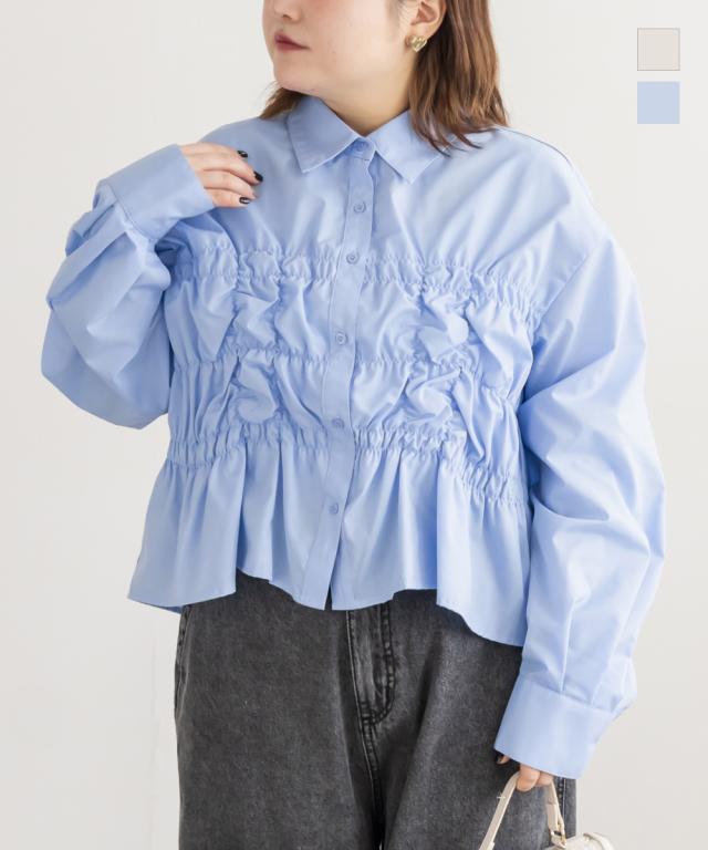 | 3Lサイズを着用しました。身幅や腕まわりにしっかりゆとりがありました!フロントのシャーリングデザインが立体感を生み、自然とメリハリのあるシルエットに見せてくれます。気になるお腹まわりをさりげなくカバーしてくれるのも嬉しいポイント♪デニムパンツでカジュアルにも、スカート合わせでフェミニンにも着られる、幅広いシーンで活躍してくれそうなブラウスだと思いました◎ |
