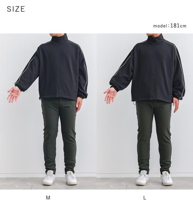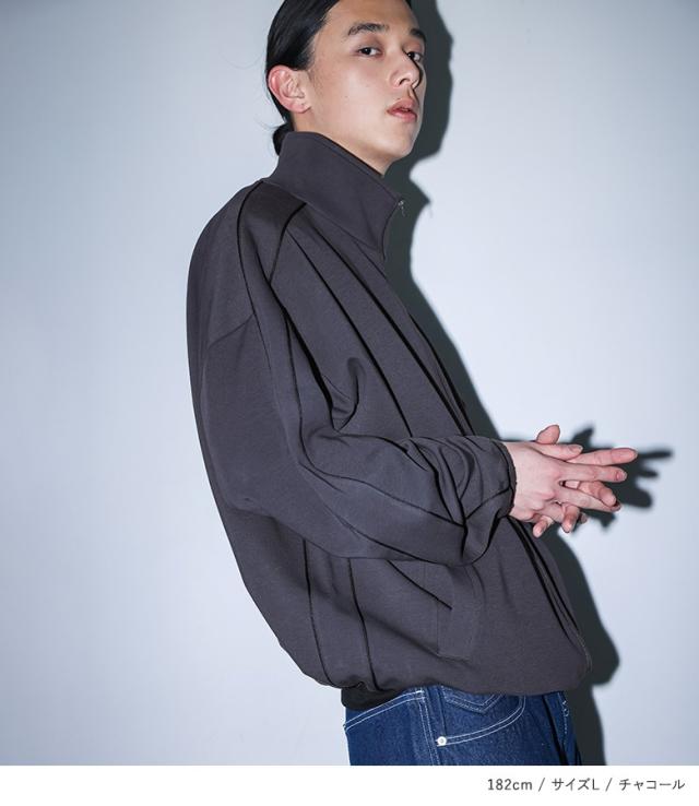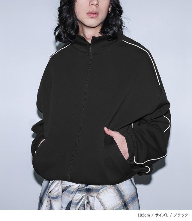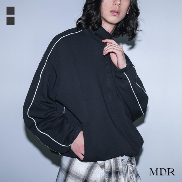 <春新作>『MDRポンチトラックジャケット』【メール便不可】【30】[ジャケット メンズ トップス 長袖 トラックジャケット 羽織 ポンチ素材 ジップアップ ドロップショルダー パイピング ポケット 配色 オーバーサイズ 春 秋]