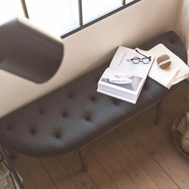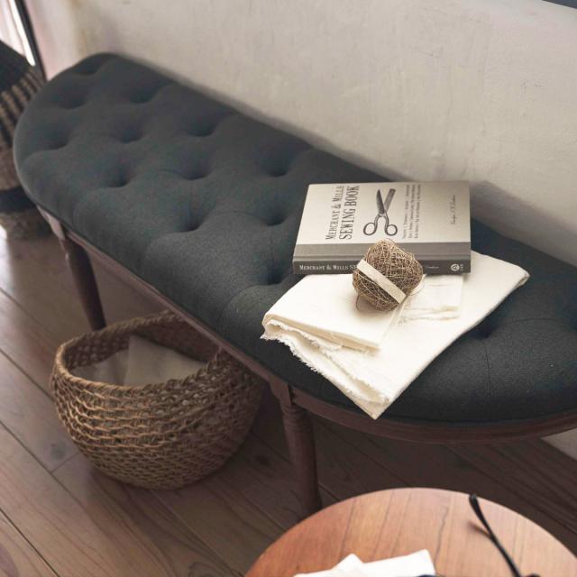 座面に施されたボタン留めのキルティングが、上品で落ち着きのある空間を演出。置くだけでインテリアのアクセントになり、ワンランク上の雰囲気に仕上げます。