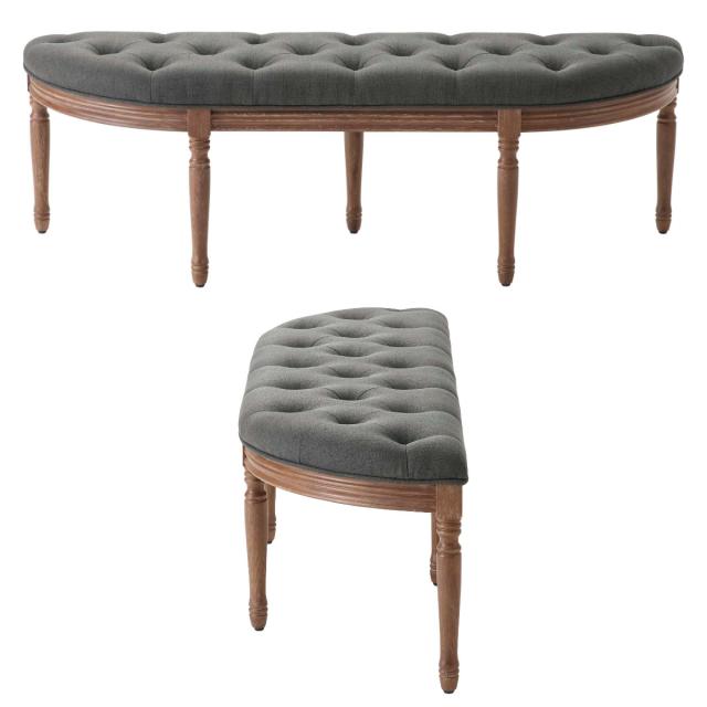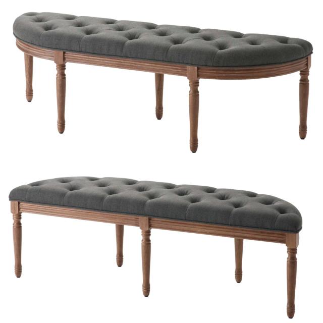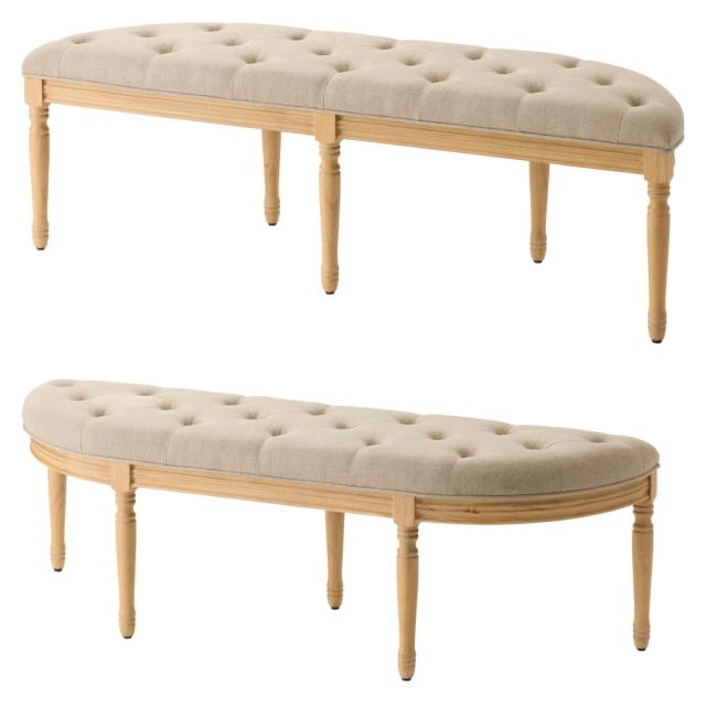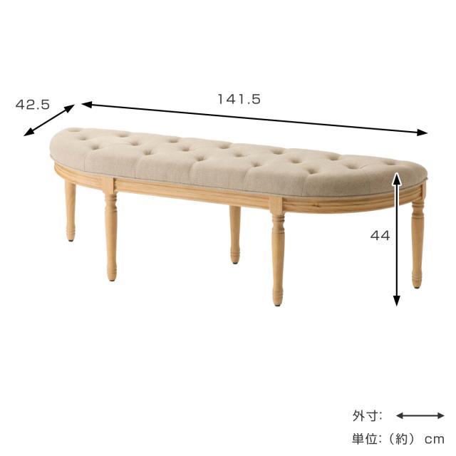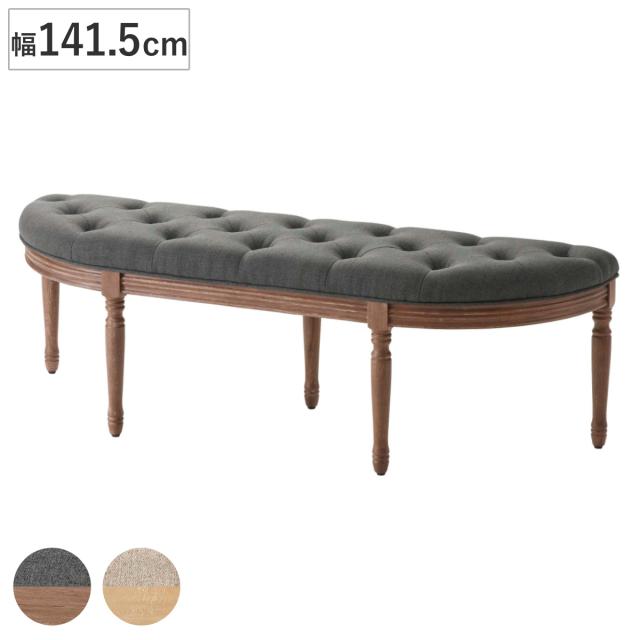ベンチ 幅141.5cm 2人掛け クラシア ダイニングベンチ ( 腰掛け 長椅子 椅子 ダイニングチェア 木製 天然木 アカシア 完成品 ハーフラウンド 壁付け ワイド ファブリック キルティング チェアー チェア イス 玄関 リビング )