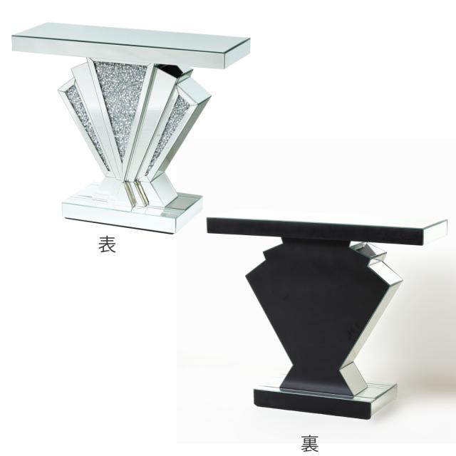 コンソールテーブル 幅90cm ダイヤ 完成品 ドレッサー ( スリム テーブル 奥行30cm 玄関 棚 玄関収納 小物置き 飾り棚 クリスタル調 天板 ディスプレイ台 ミニテーブル 廊下 リビング ディスプレイ 台 コンパクト ラグジュアリー )