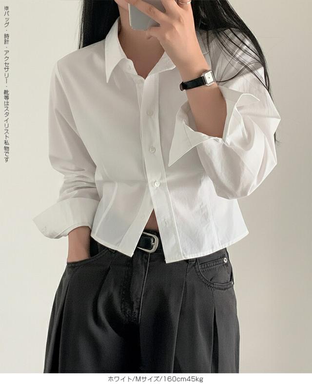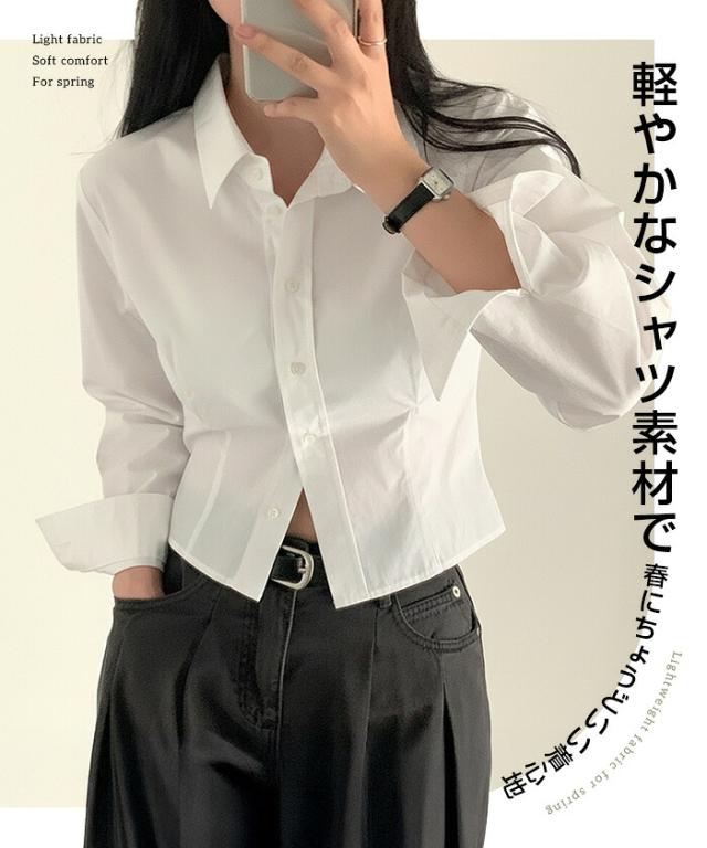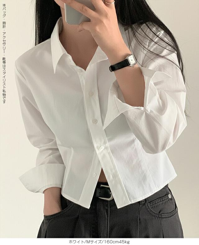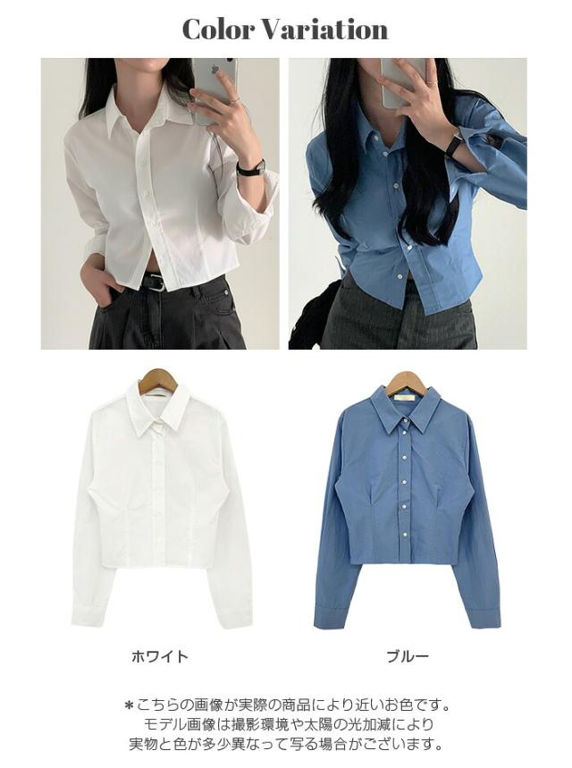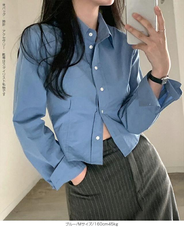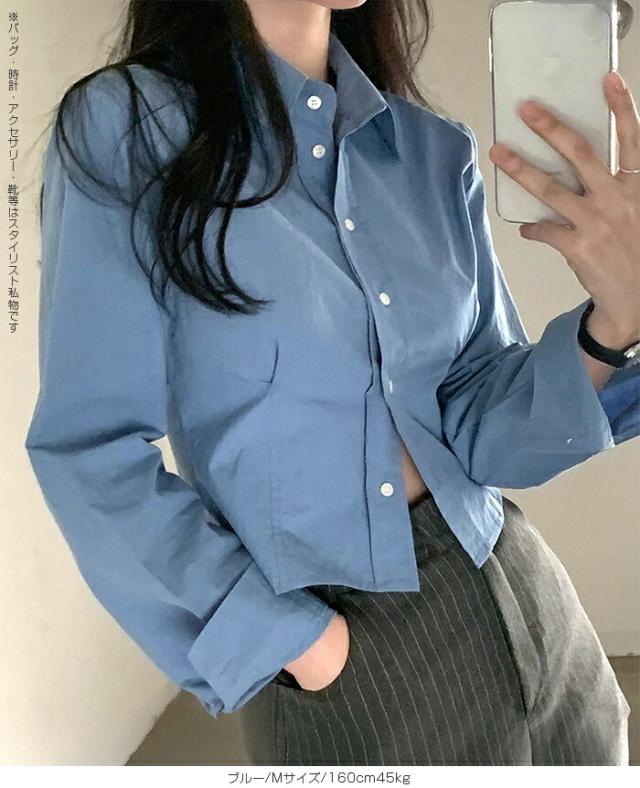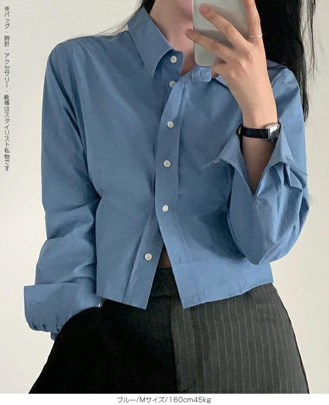 1,500円OFFクーポン!トップス シャツ レディース クロップドシャツ ショート丈シャツ 長袖シャツ 春 コンパクトシャツ 無地 ベーシックシャツ レイヤード 韓国ファッション きれいめ カジュアル ブルー ホワイト 【立体シルエットクロップドシャツ】
