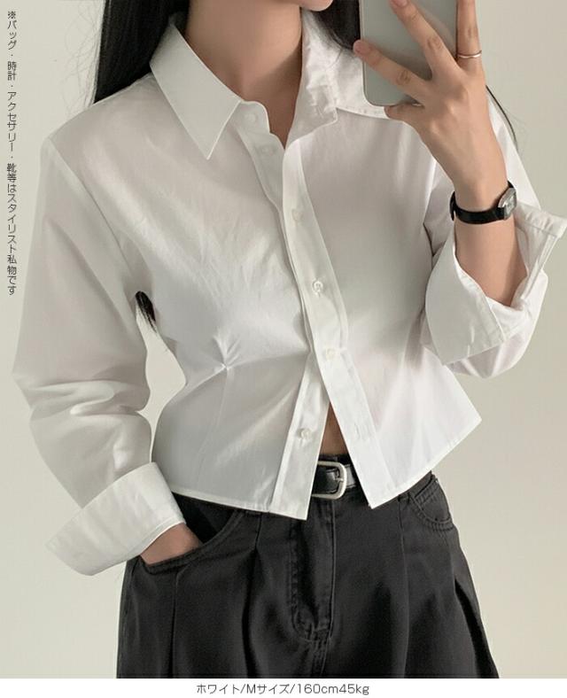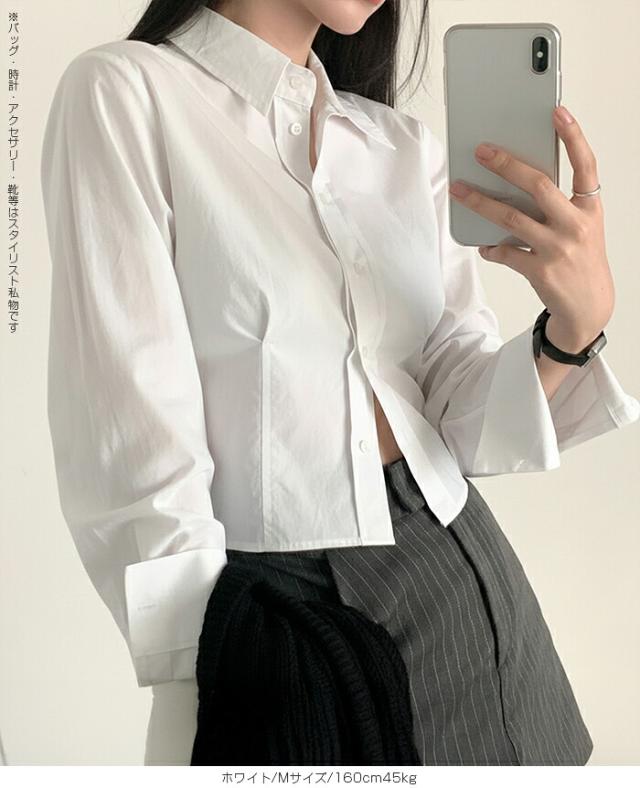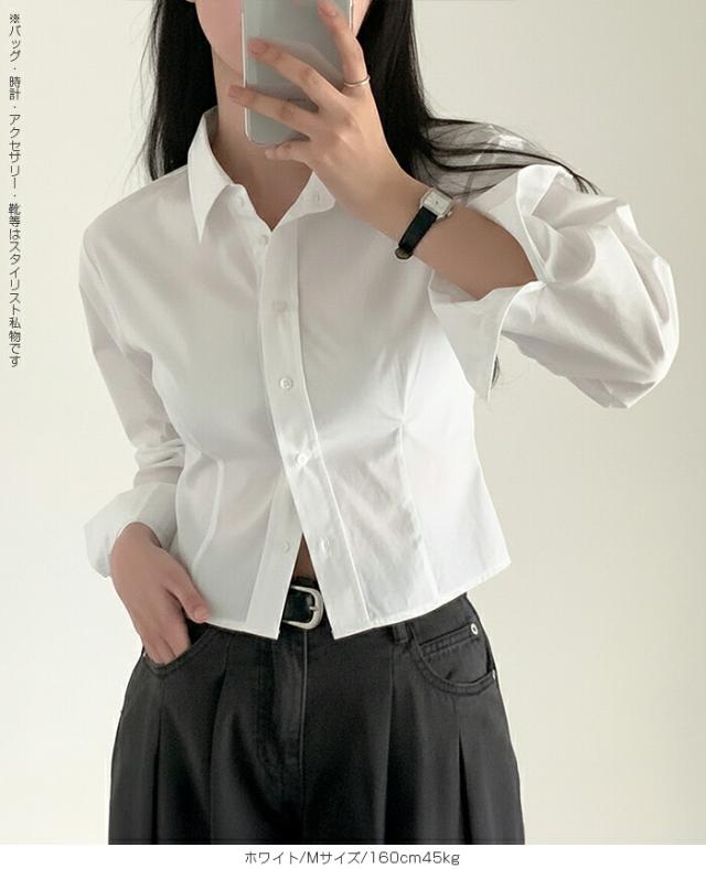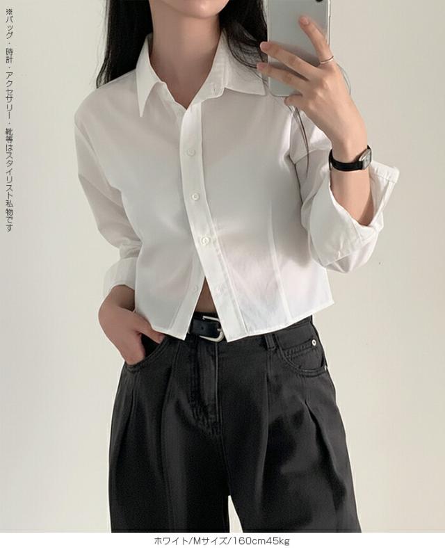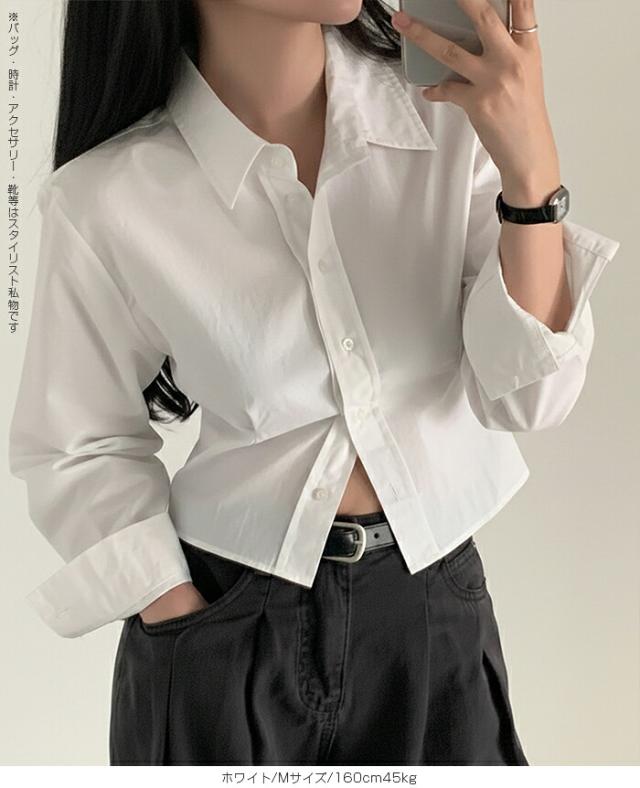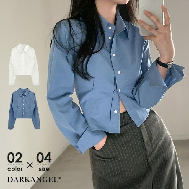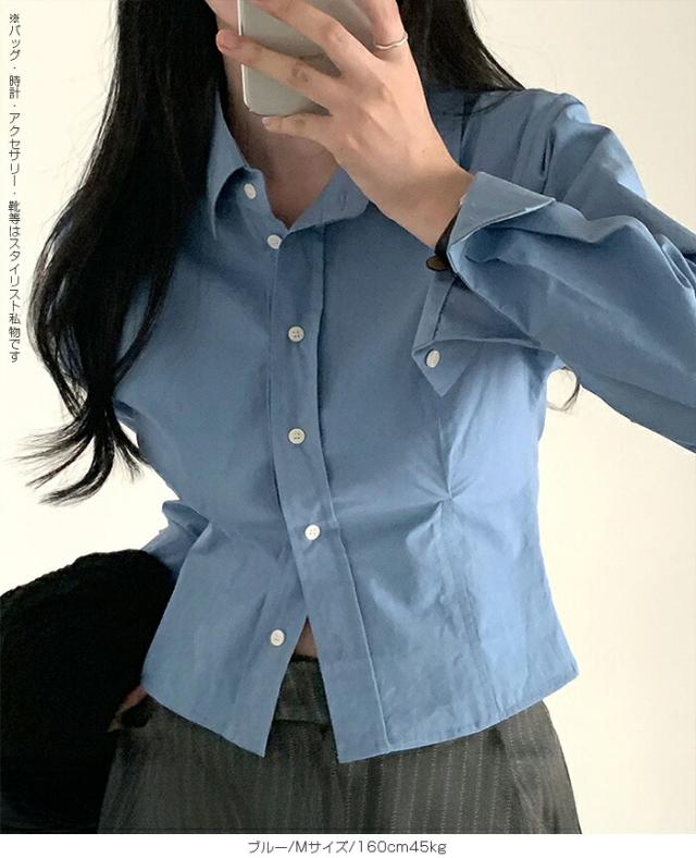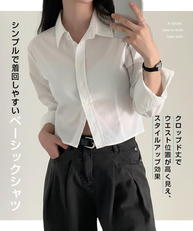 1,500円OFFクーポン!トップス シャツ レディース クロップドシャツ ショート丈シャツ 長袖シャツ 春 コンパクトシャツ 無地 ベーシックシャツ レイヤード 韓国ファッション きれいめ カジュアル ブルー ホワイト 【立体シルエットクロップドシャツ】