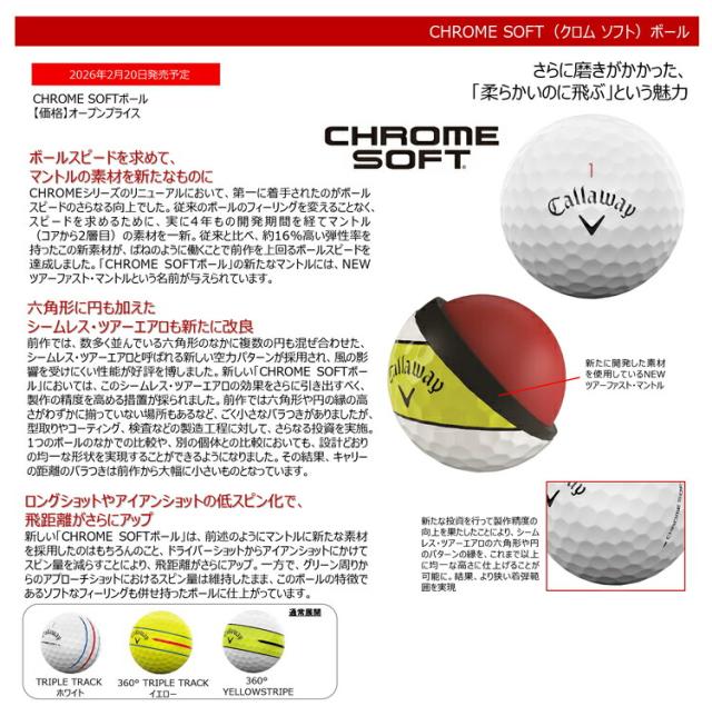 キャロウェイ クロム ソフト ゴルフボール 1ダース12個入り CALLAWAY CHROME SOFT 2026年モデル日本正規品