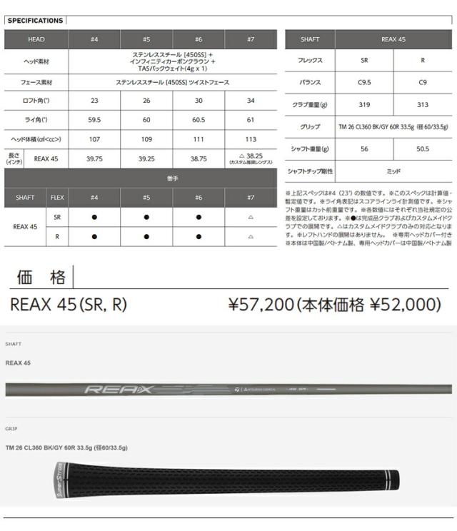 | ラインアップ | REAX45 | SR | 〇 | 〇 | 〇 | × | |||||||