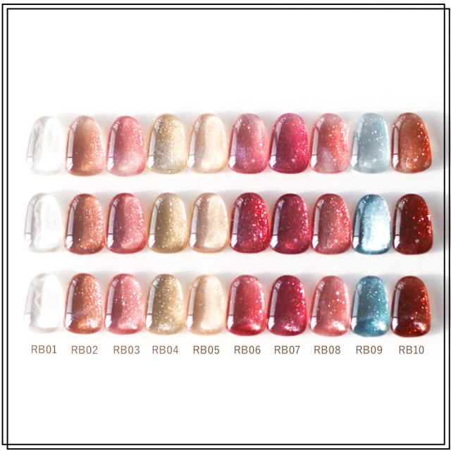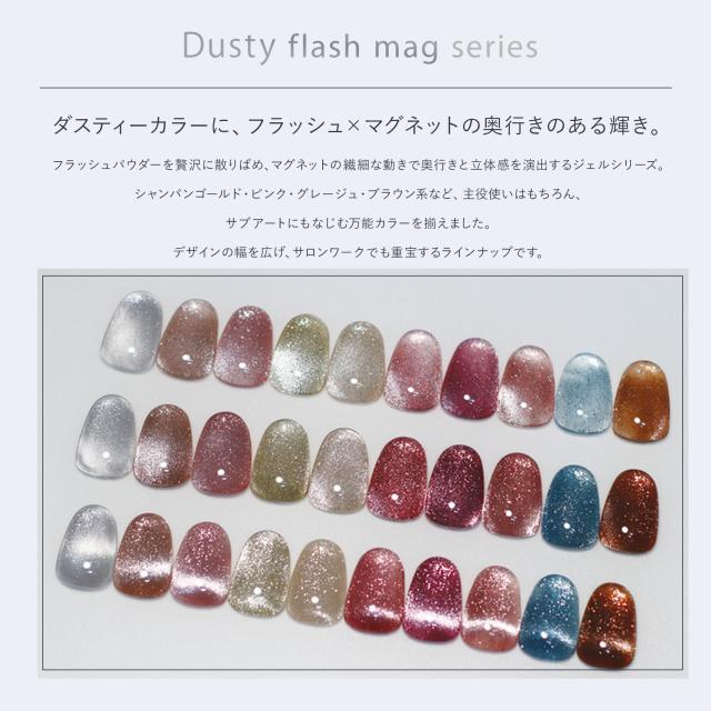 フラッシュパウダーを全体に散りばめ、マグネットの動きで奥行きのある輝きを楽しめるジェルシリーズ。