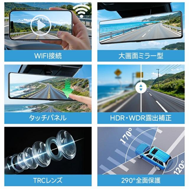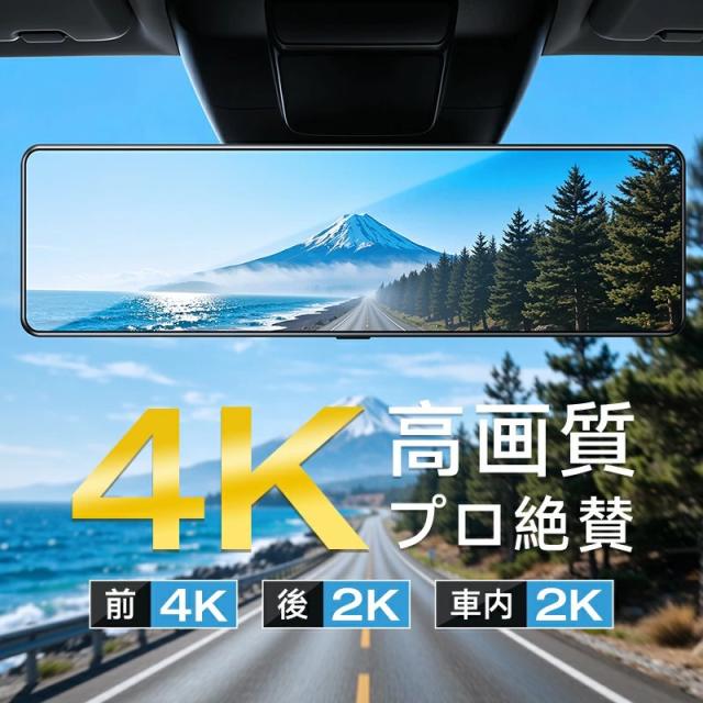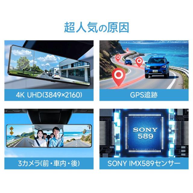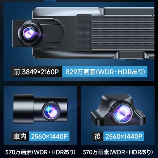 ドライブレコーダー ミラー型 4K高画質 3カメラ・前後・車内&GPS追跡 Wifi接続 4K UHD 800万画素 SONYセンサー WDR タッチパネル式 ドラレコ GPS 24時間駐車監視 170°広角 ループ録画 衝撃録画 常時録画 動体検知 上書き録画