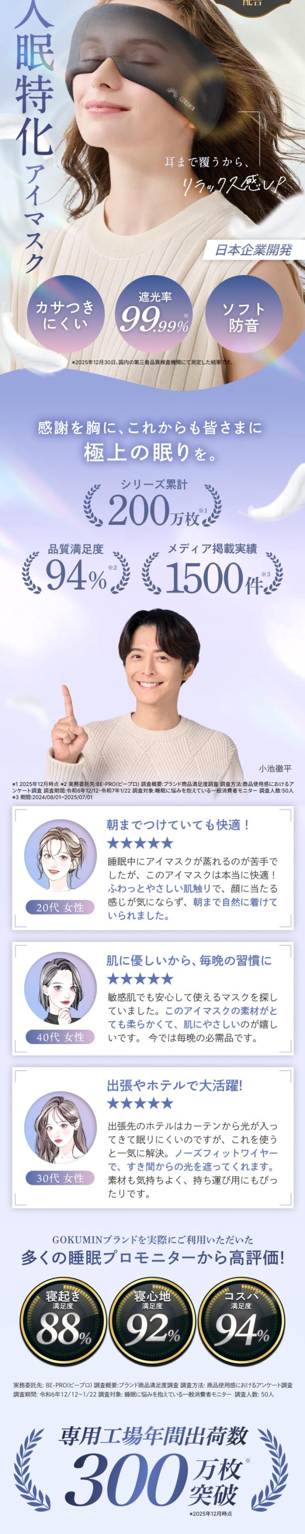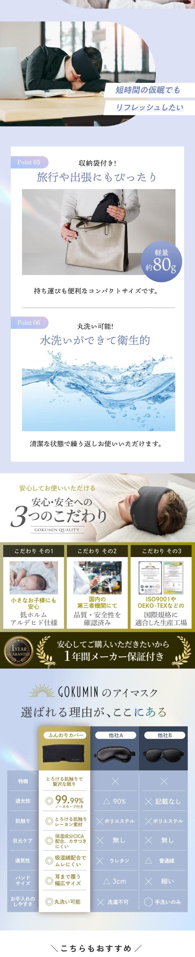 アイマスク GOKUMIN 【睡眠指導士推奨】スリープアイマスク アイピロー 睡眠グッズ 仮眠 遮光 立体 3D CICA配合 低反発 通気性抜群 柔らかい サイズ調整 洗える 洗濯 軽量 快眠 旅行 出張 夜行バス 飛行機